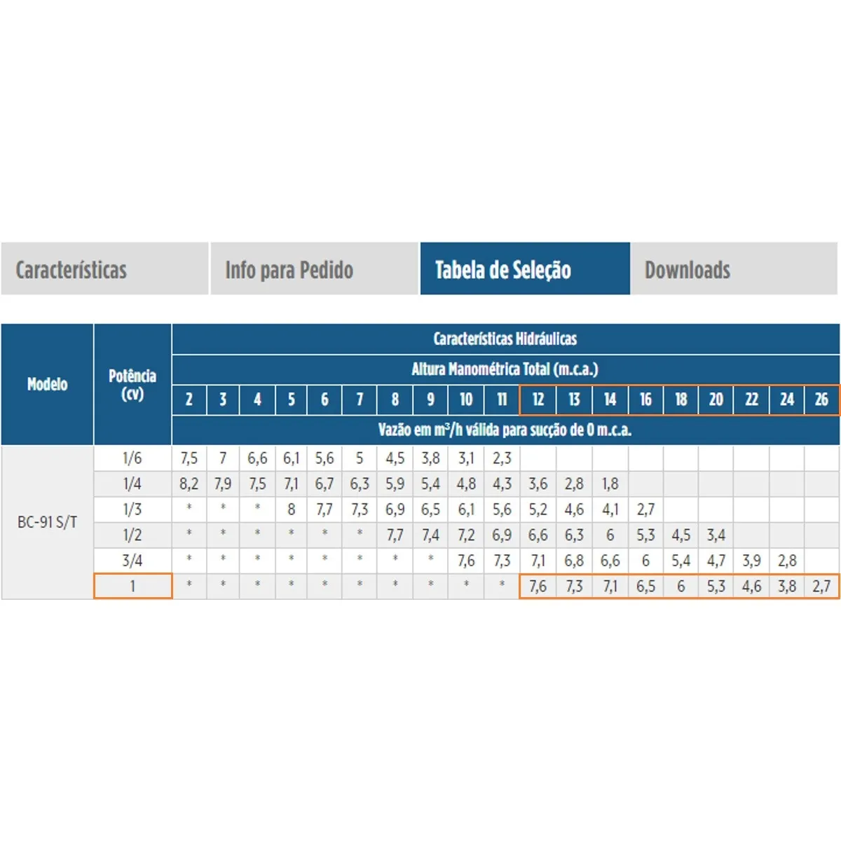 Para bombeamento de água acima de 70 °C utilize BC-91 T, com rotor de bronze e selo mecânico de Viton®.
