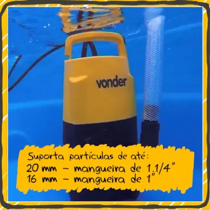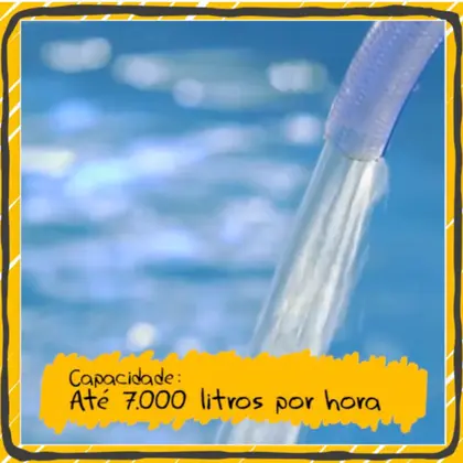 Com capacidade de até 7.000 litros por hora, transporta com eficiência água limpa ou suja com partículas em suspensão de até 20 mm (mangueira de 1.1/4″) e 16 mm (mangueira de 1″). Possui chave boia, que liga e desliga automaticamente de acordo com o nível da água, evitando funcionamento a seco, além de cabo de alimentação com 10 metros de comprimento.