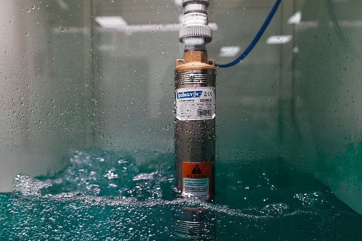A bomba submersa é o tipo mais indicado para instalar no poço artesiano por funcionarem dentro da água, pressionando o líquido durante o processo de bombeamento. Grande parte das bombas submersas contam também com o sistema de bombeamento elétrico submersíveis (ESP) de funcionamento, com redução da pressão do fluxo e aumento da pressão do fundo do poço. Por isso, o caminho percorrido pela água do poço artesiano que é bombeado por ela é, em grande maioria, feito de uma área de nível menor para um mais elevado, como a caixa d’água de um edifício, por exemplo.