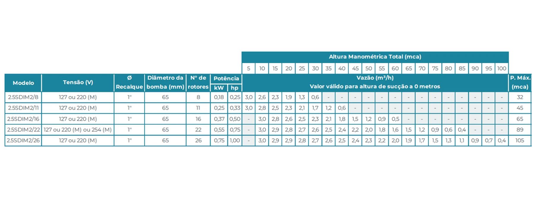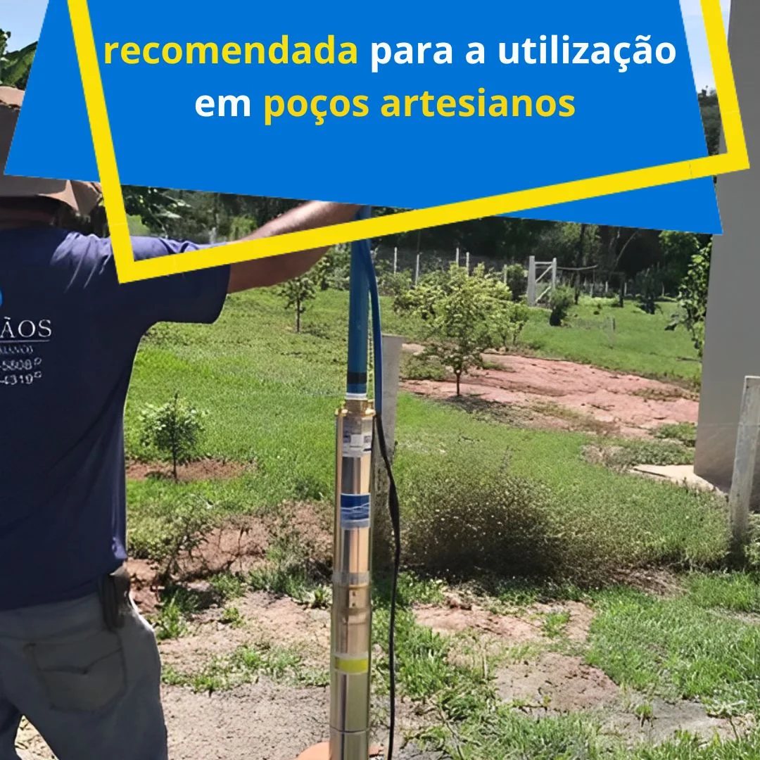 Com corpo em aço inox AISI 304, rotores flutuantes e bocal de recalque em bronze, opera em profundidades de até 80 metros com alta eficiência e resistência a variações de tensão.