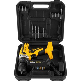 Acompanha acessórios encaixados perfeitamente na maleta, conferindo organização, praticidade e maior vida útil dos acessórios. Possui regulagem para 18 posições de torque e velocidade variável (2 velocidades). Contém 3 funções de operação: parafusadeira, furadeira sem impacto e furadeira com impacto. Possui LED para melhor visibilidade do local de trabalho, indicador de carga da bateria, cabo com revestimento emborrachado proporcionando maior conforto ao operador, bateria de íons de lítio que confere alta eficiência de operação, além de fonte de alimentação bivolt automática com tensão de entrada de 100 V~ – 240 V~.