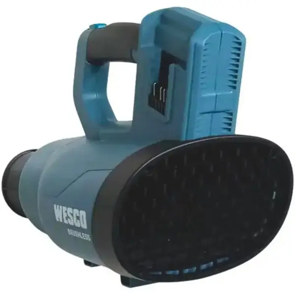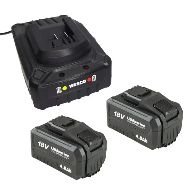 Com três velocidades variáveis e função turbo, este soprador adapta-se a diferentes necessidades, oferecendo maior potência quando necessário. Funciona a partir de duas baterias de 18V 4Ah WS9940 WESCO (vendidas separadamente), garantindo autonomia, eficiência e liberdade de movimento. O carregador conversor WS9969 WESCO permite recarga rápida e segura, garantindo que suas baterias estejam sempre prontas para uso em apenas 2 horas.