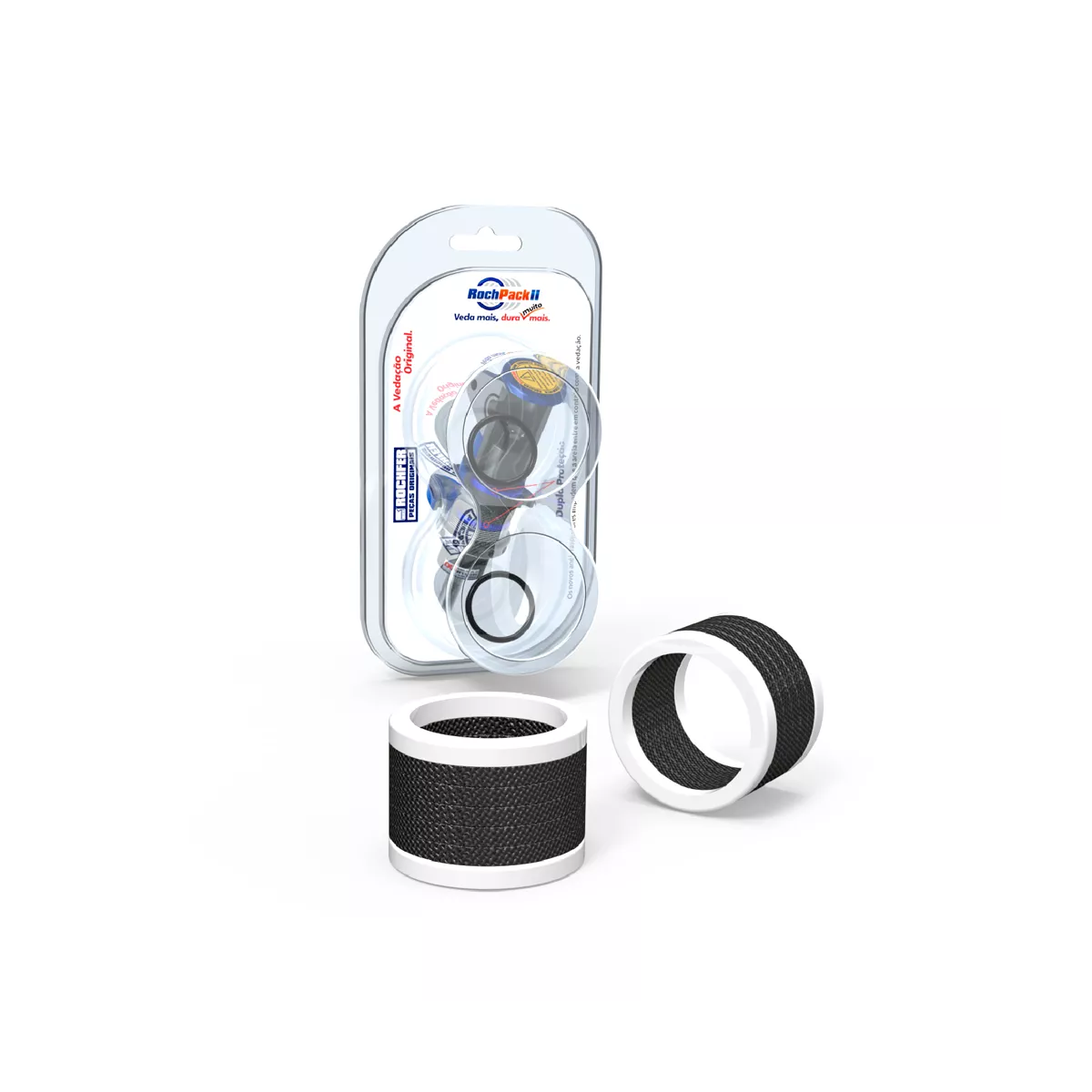 O RochPack® é uma vedação composta por anéis de PTFE que já vem cortados na medida exata dos Pistões, possui também dois Anéis raspadores poliméricos que evitam a entrada de areia na região de contato com os Pistões, tudo isso promove uma maior vida útil tanto da própria vedação quanto dos Pistões. Sua eficiência pode chegar até 12 meses.